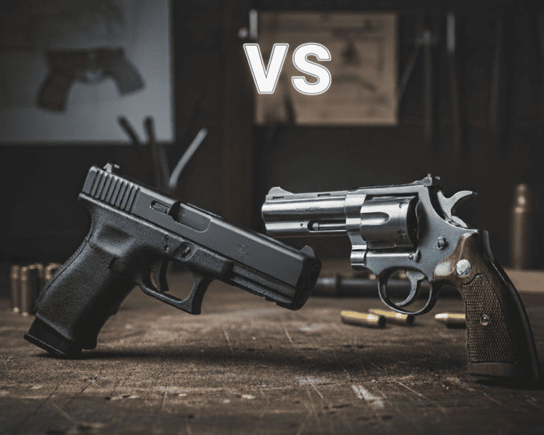 Il confronto pro e contro revolver vs pistola divide forum e poligoni: i puristi lodano la semplicità, i tattici la velocità.
