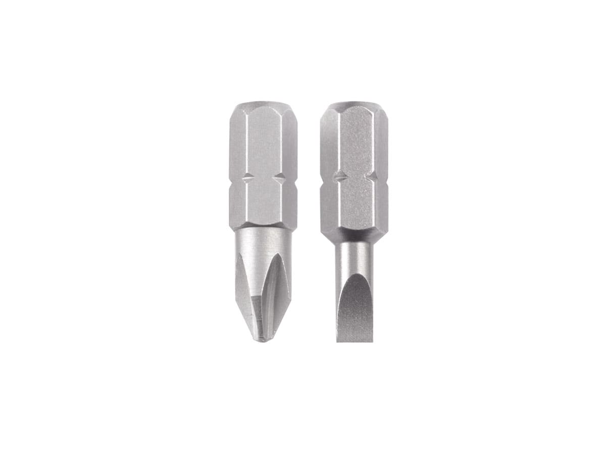 Nella parte inferiore nel manico ha due punte per il cacciavite che si innestano magneticamente nel tallone (cacciavite punta e croce )