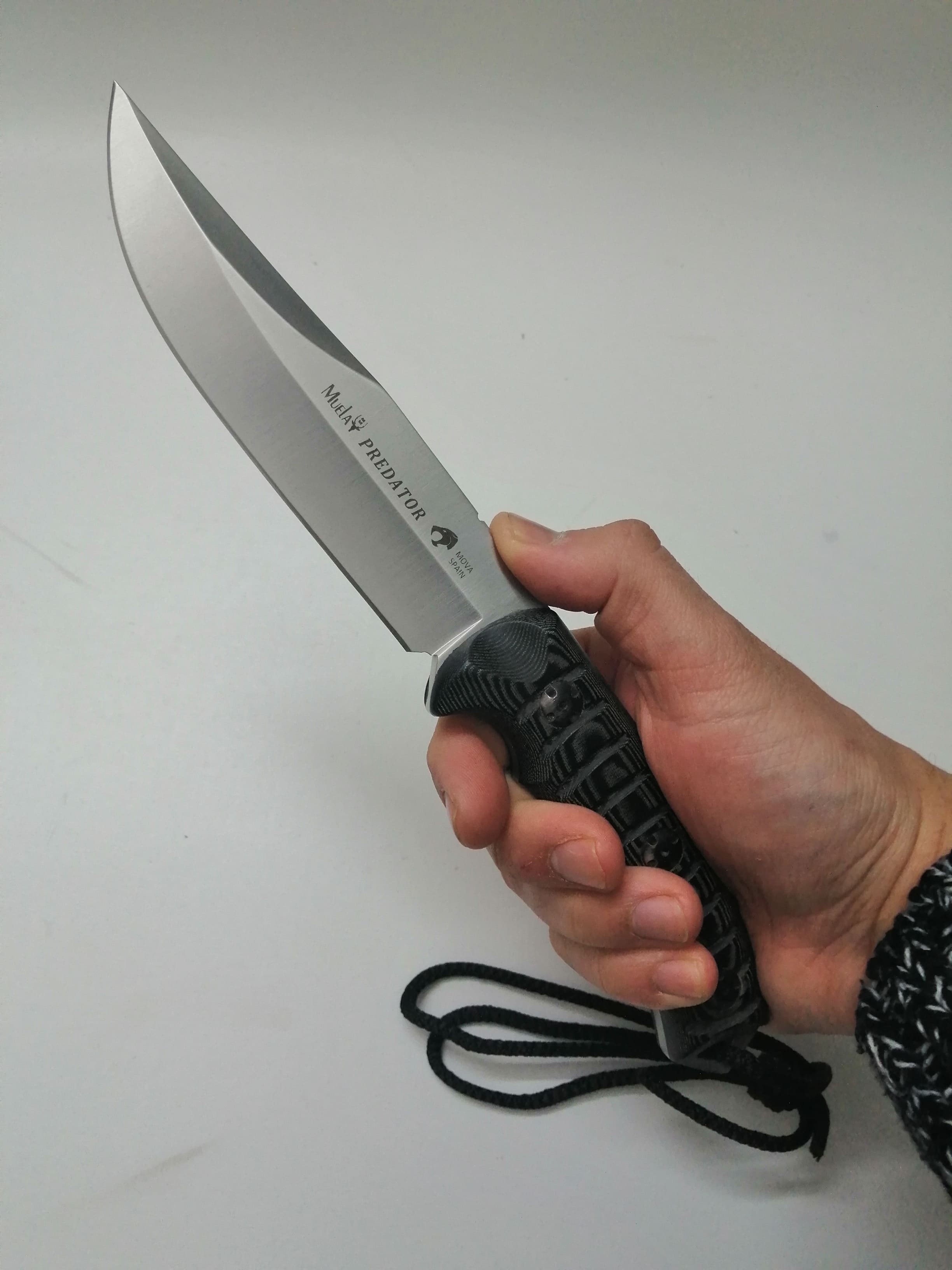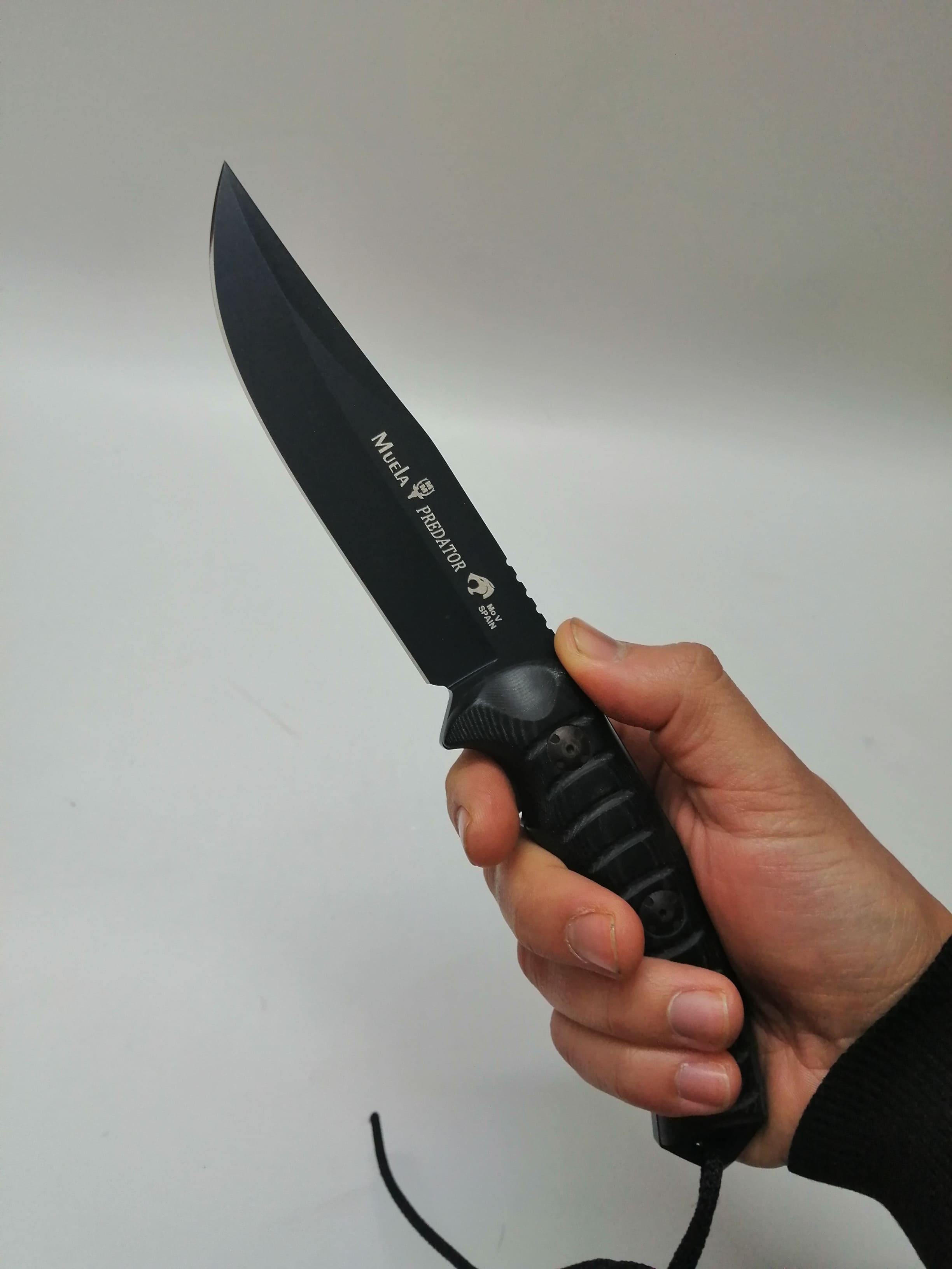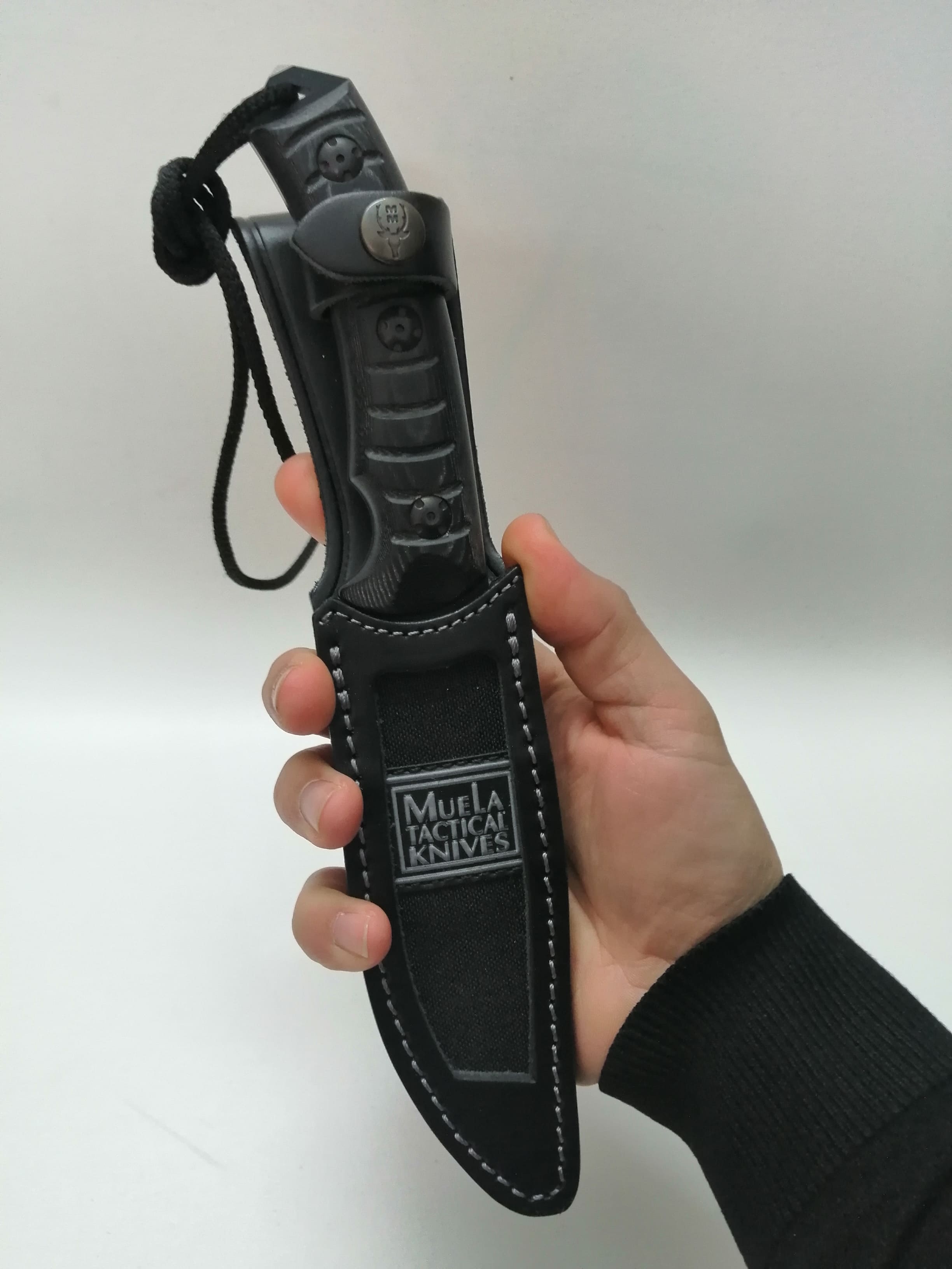 Il coltello PREDATOR Muela oltre a essere robusto ben compatto è molto bilanciato a un peso complessivo di ben solamente 418gr con a corredo viene fornito di bellissima custodia in pelle mista cordura.