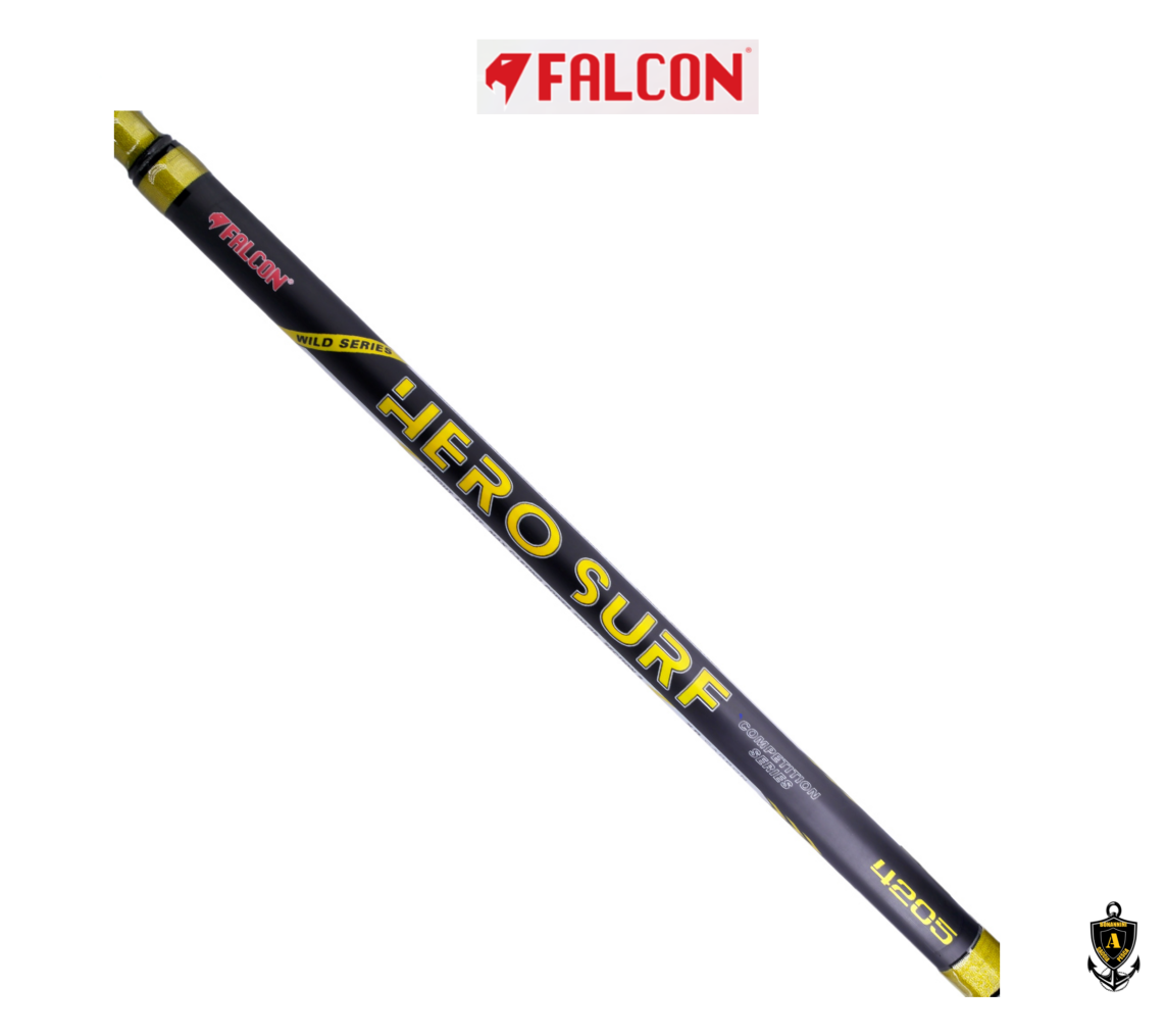 La canna FALCON HERO SURF è lunga 4,20 MT ha una bella impugnatura e grazie al suo calcio molto reattivo vi permetterà di lanciare ad ampie distanze con il massimo controllo.