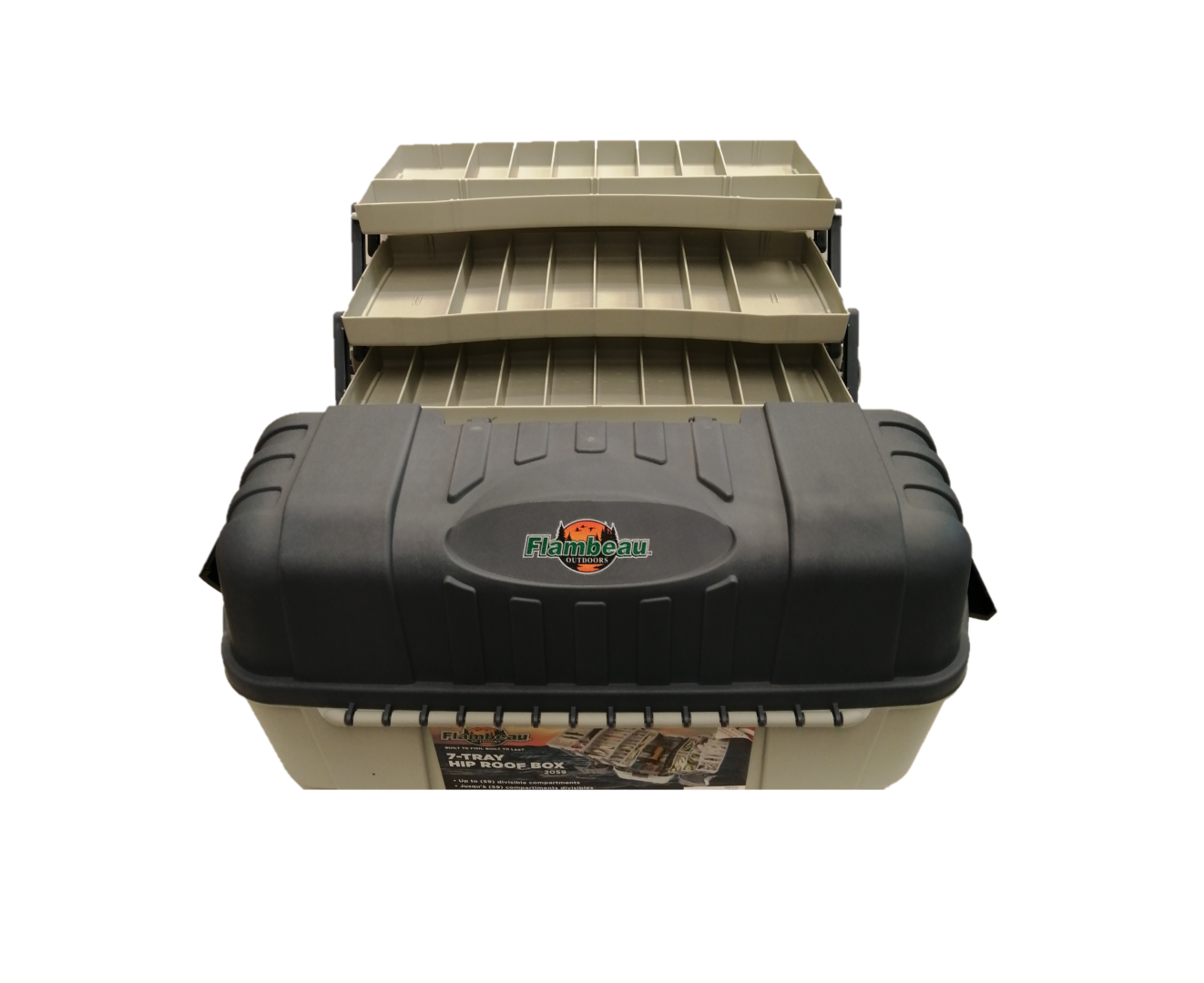 CASSETTA DA PESCA PER BARCA FLAMBEAU 7 RIPIANI HIP ROOF molto ampa ideali per riporre tutta la vostra minuteria da pesca in maniera impeccabile ideata dal marchio Francese Flambeau noto per produrre valigette di plastica molto robuste.