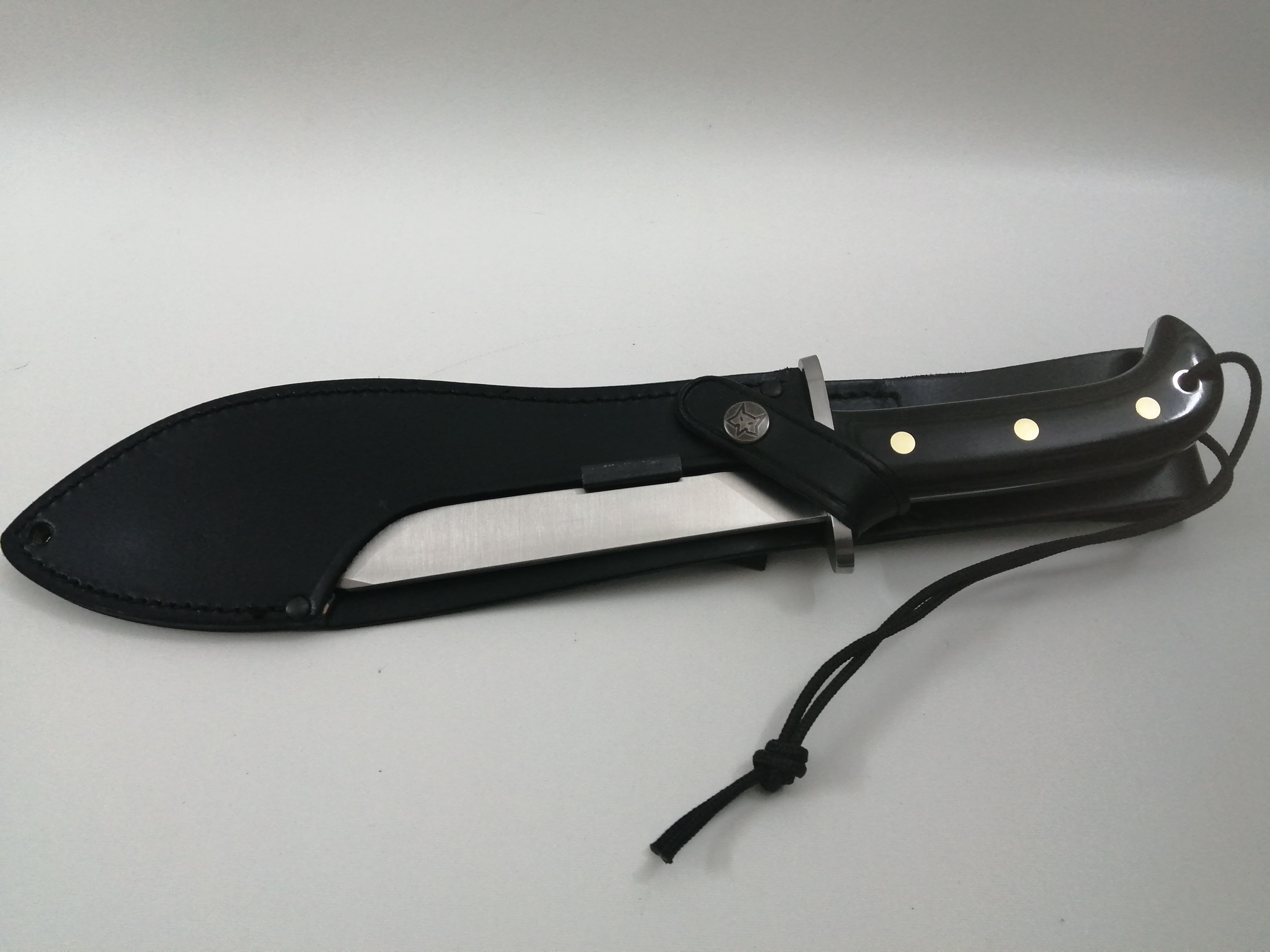 La lama Fulltang (forgiato in uno unico pezzo) realizzata in acciaio inox 4119 nitro-B con durezza HRC 55-57 un magnifico prodotto la lama ha un grande potere di taglio con un eleavata resitenza alla corrosione, con una guardia ben pronunciata progettata per salvaguardare le dita e accompagna il coltello un bellissimo fodero in pelle.