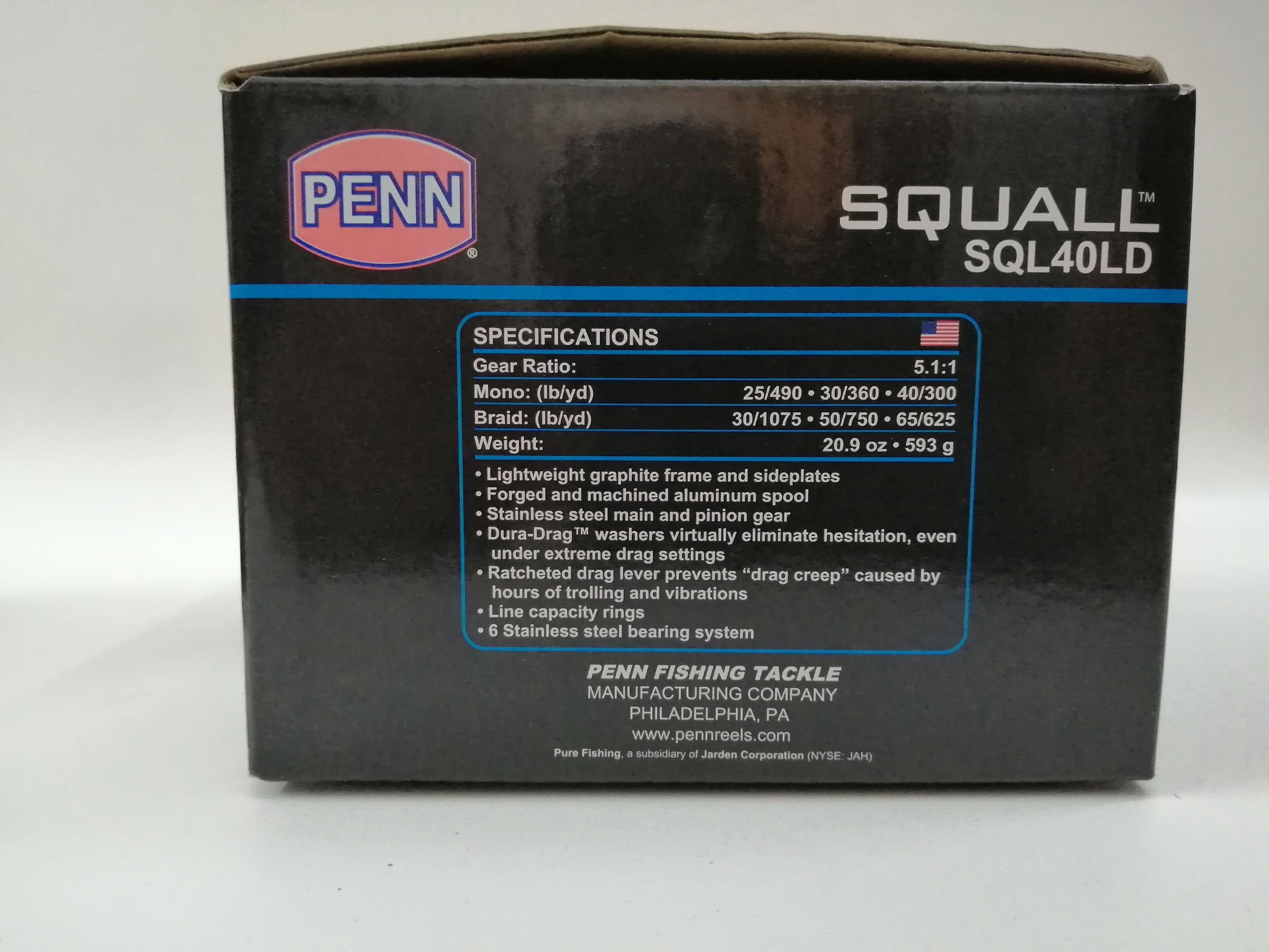 MULINELLO DA TRAINA CON FRIZIONE A LEVA PENN SQUALL 40 uno stupendo articolo completo e funzionale realizzato il corpo in graffite, leggerissimo ed ergonomico molto tenace contro la salsedine, affidabilità e robustezza sono le due carte che gioca questo straordinario mulinello rotante da barca.