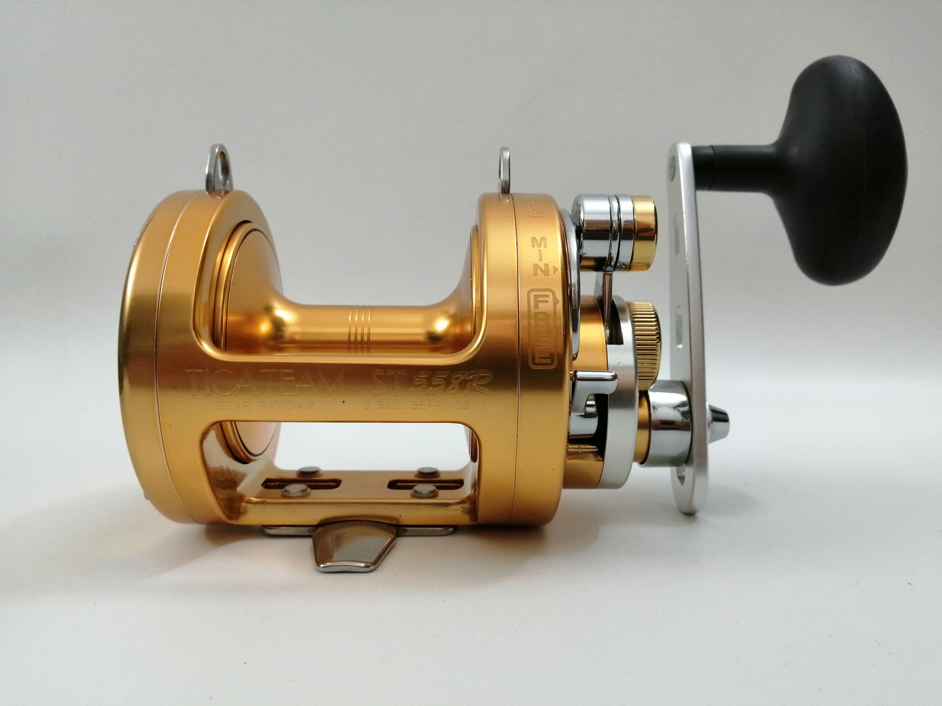 Il TICA TEAM ST 558R è stato fabbricato con ben 6 cuscinetti in acciaio schermato anticorrosione e altri due posizionati nella parte laterale della bobina, ed he dotato di una robusta frizione a leva, pratica e robusta con la possibilità di essere inserita con una sola mano.