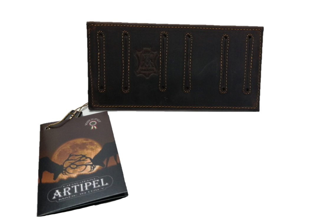 PORTA CARTUCCE PER CARABINA ARTIPEL splendido articolo dall'eleganza unica del suo genere, realizzato in pelle di primissima qualità idrorepellente ingrassata con effetto nabuk.
