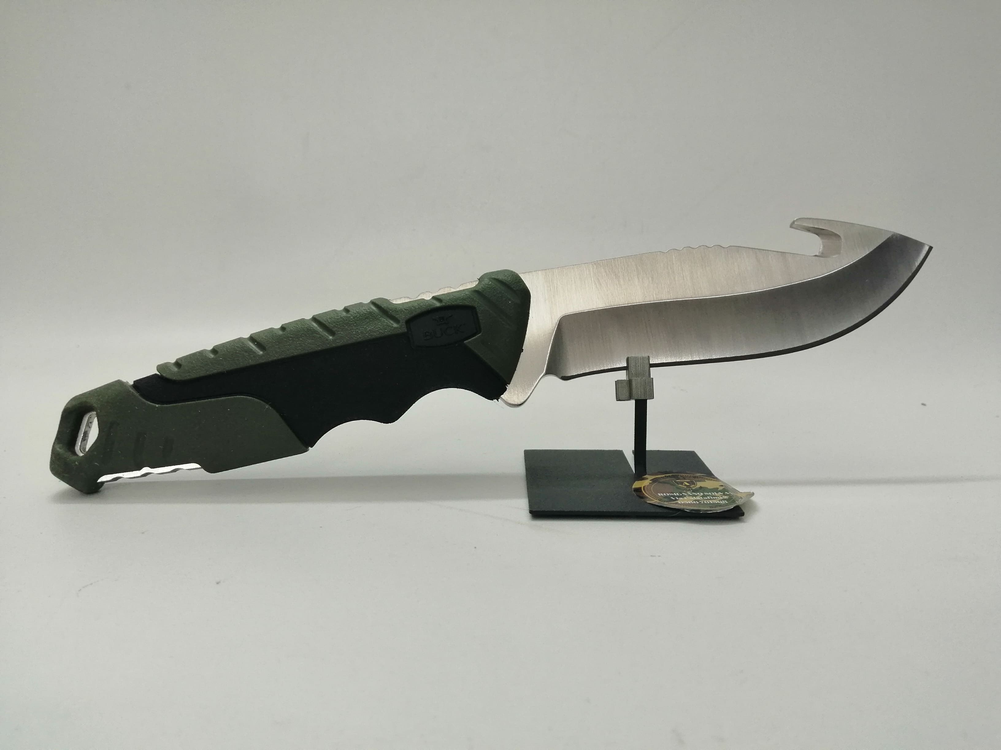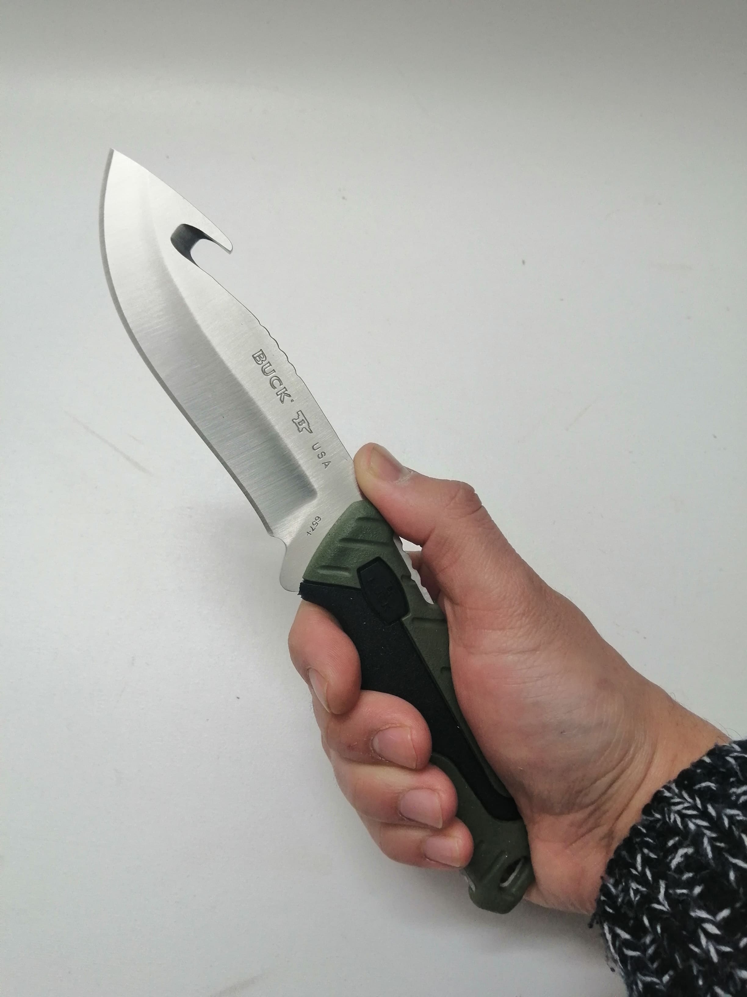 Coltello Skinner da caccia Buck Pursuit large Guthook bellissimo articolo, particolare ed efficiente appositamente realizzato per scuoiare ( togliere la pelle al capo di selvaggina abbattuto ) semplifica moltissimo il lavoro, grazie alla presenza su lama di un uncino rivolto verso l'alto molto tagliente ed estremamente pratica per chi va a caccia o utilizzata in caso di pericolo come coltello taglia cinture.