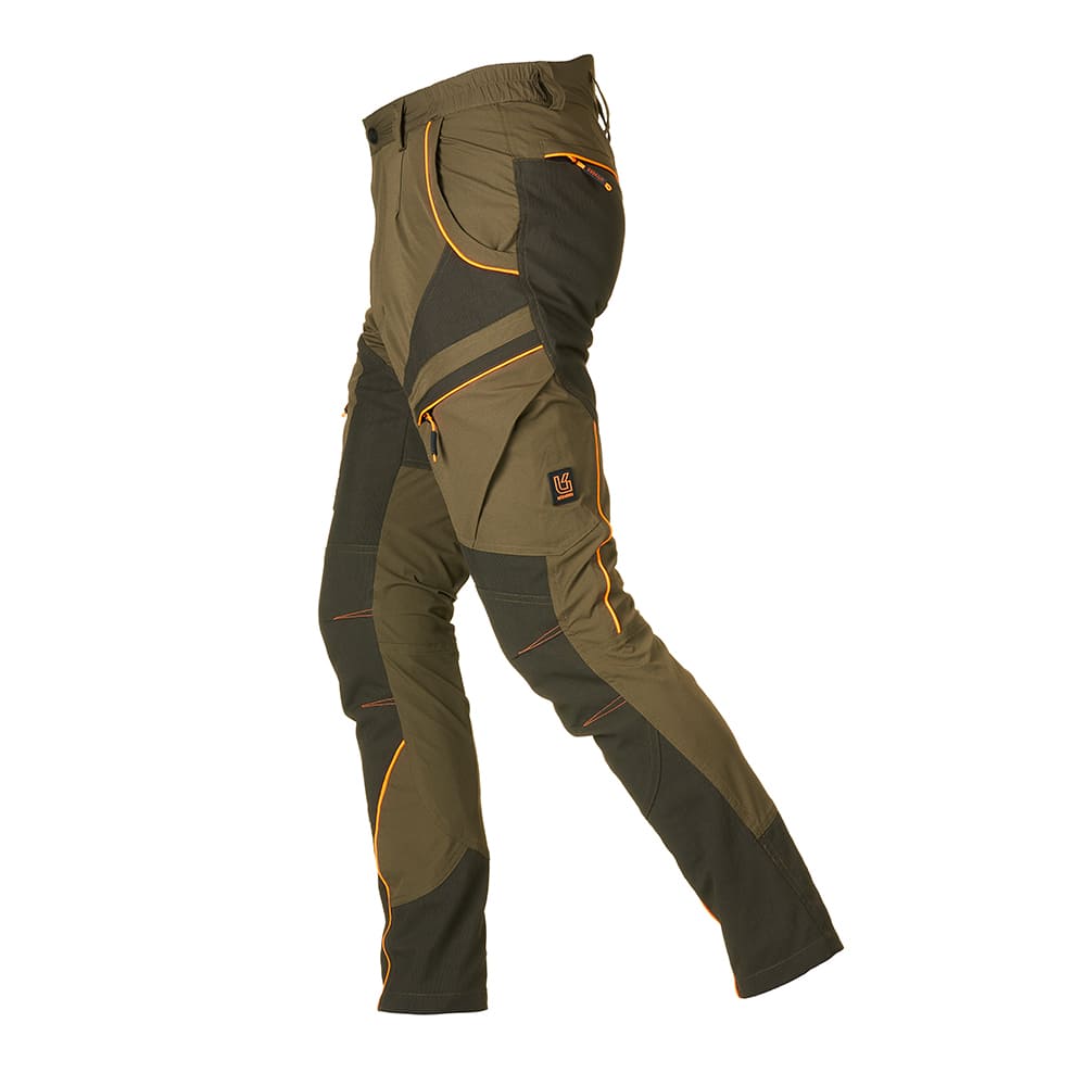 PANTALONI TECNICI CACCIA/TREKKING ELASTICIZZATI ALPI UNIVERS 92471 392 articolo fantastico da look moderno e molto attuale, semplicemente innovativo, ideato con questi righine di rifinitura orange dando vita a un contrasto di colori stupendi.