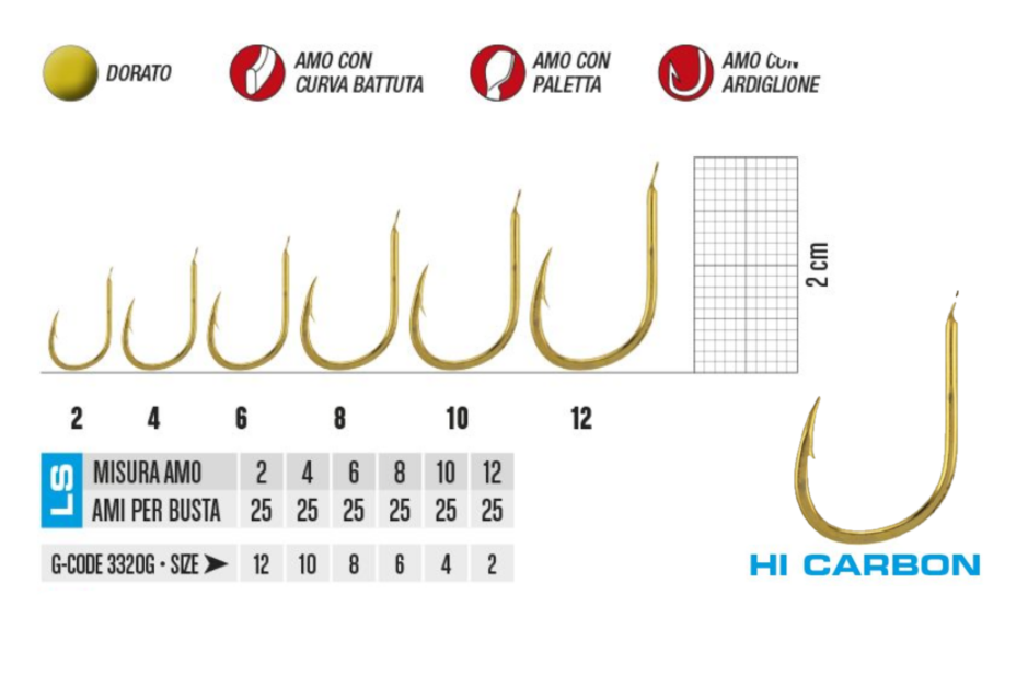 Un'amo da pesca per le carpe robusto e con altissimo grado di penetrazione, ideato con bel gambino corto e storto a paletta con punta a becco d'aquila straordinaria, efficace che non lascia scampo al pesce.