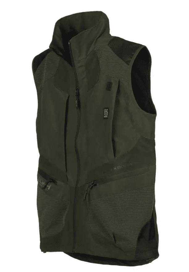Un gilet da caccia magnifico un capo molto tecnico dall'innovativo design avvolto da un bellissimo colore verde scuro, realizzato in tessuto laminato fantastico che garantisce leggerezza e una grandissima robustezza.