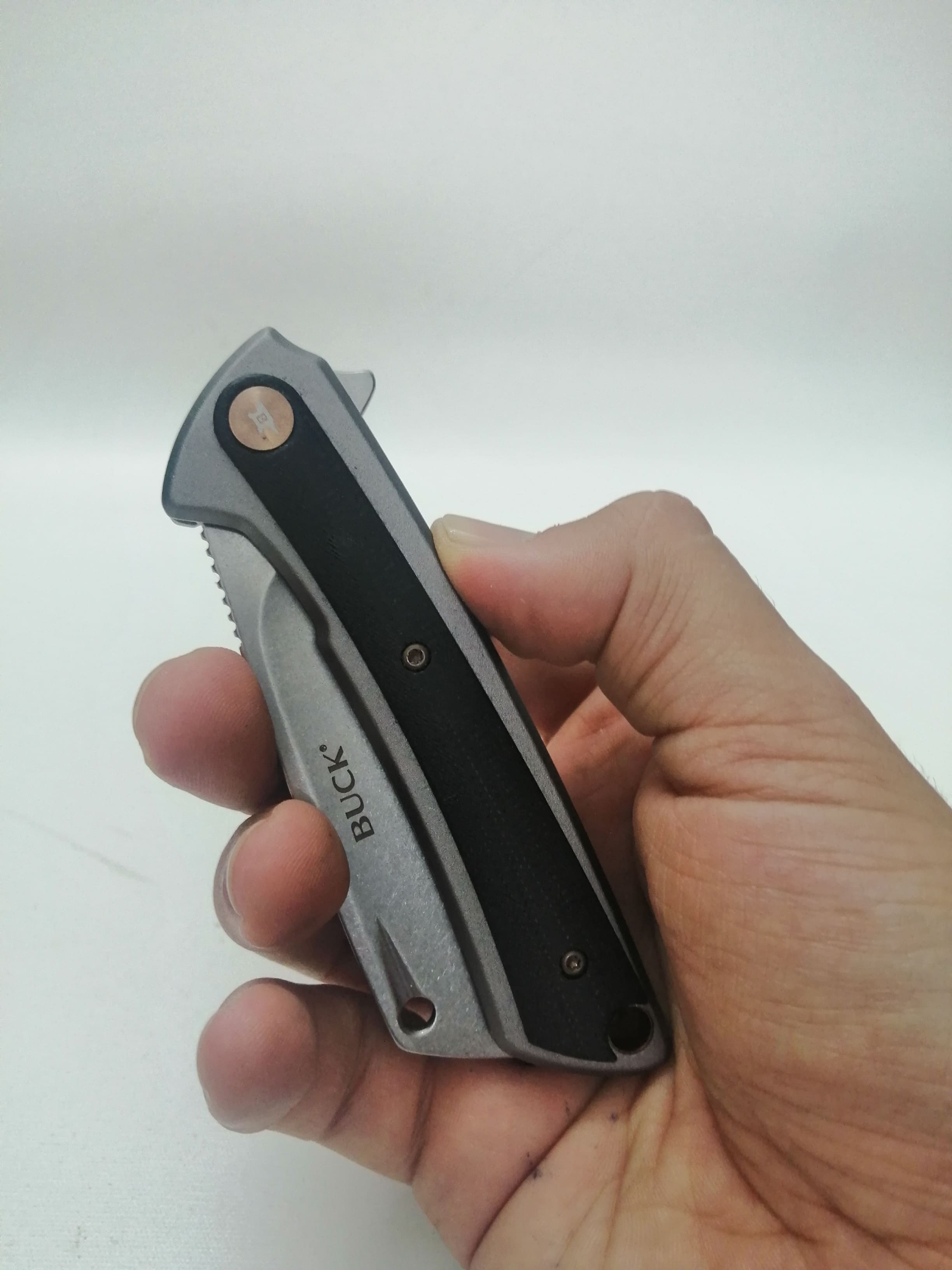 Un articolo straordinario di medie dimensioni, un coltello pieghevole Buck favoloso, si trasporta in tasca in maniera eccellente, molto bilanciato con lama affilatissima a forma di mannaia creata in acciaio D2 Steel e riservato alla lama uno speciale trattamento chiamato Stonewash garantendo un eccellente resistenza alla corrosione.