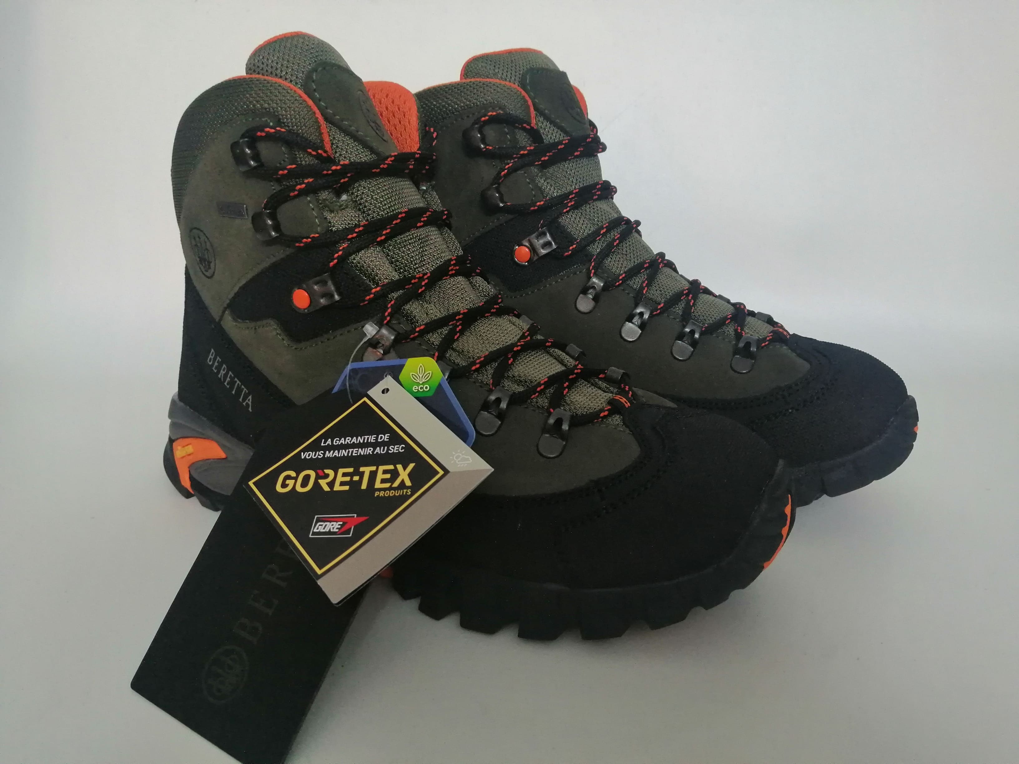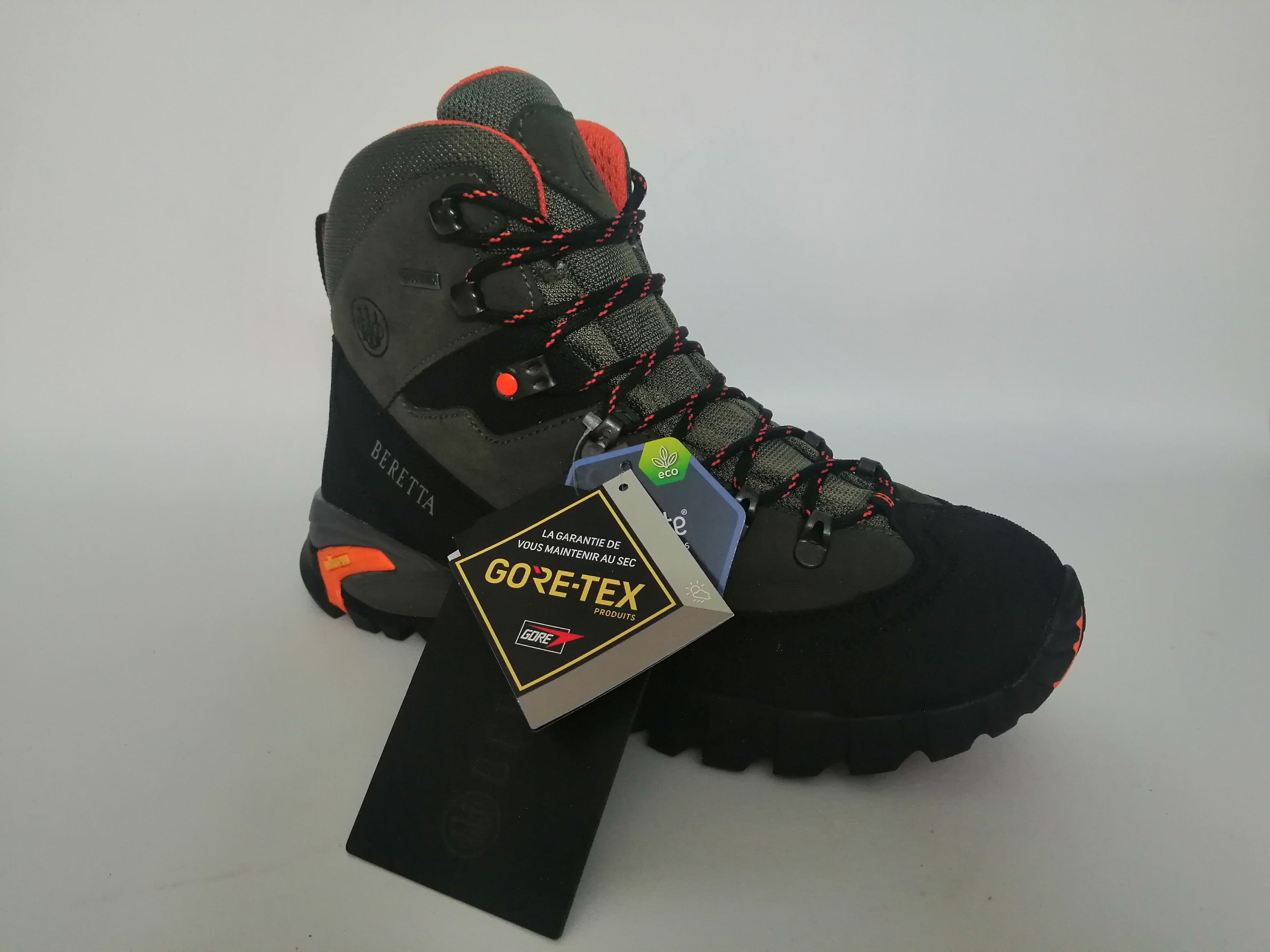 Le scarpe da caccia Beretta Setter GTX si distingue per il suo design moderno e funzionale, arricchito da inserti arancioni ad alta visibilità che migliorano la sicurezza nei boschi.