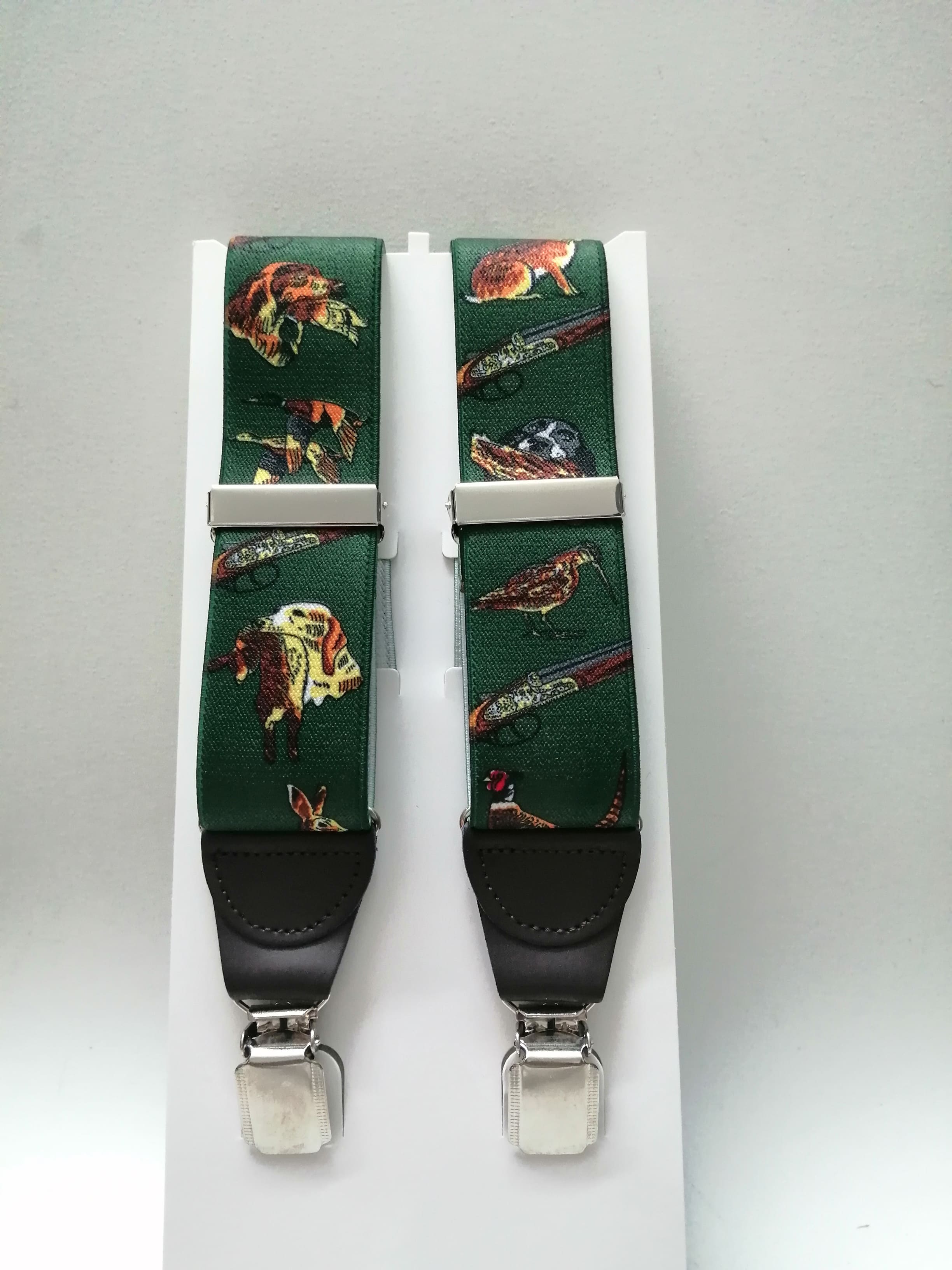 BRETELLE DA CACCIA VERDI CON DISEGNI DI ANIMALI