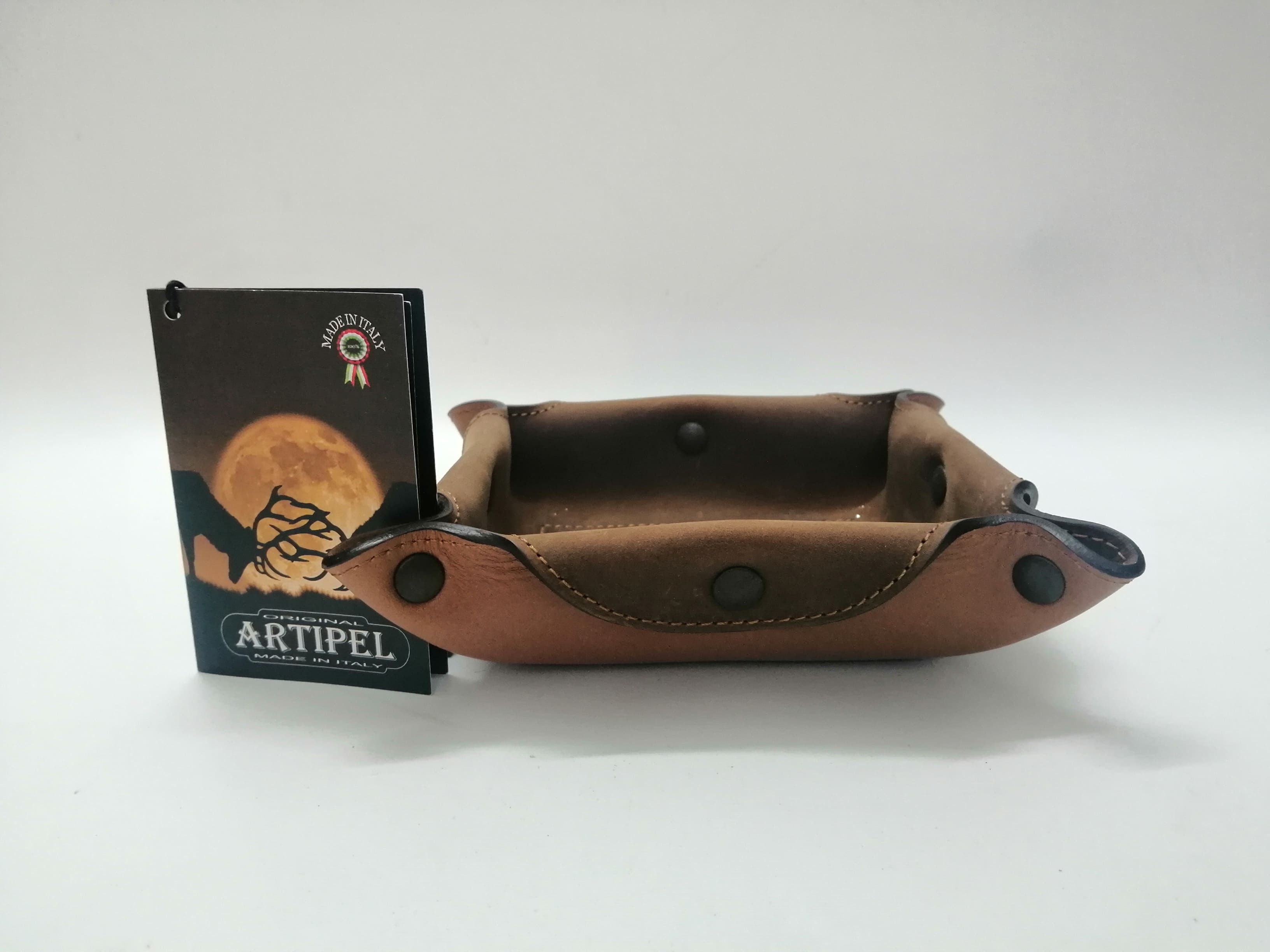 SVUOTATASCHE IN PELLE EFFETTO NABUK ARTIPEL eccelle prodotto comodo e da appoggiare all'interno della vostra abitazione magari sul comodino e sul tavolino di legno di ulivo.