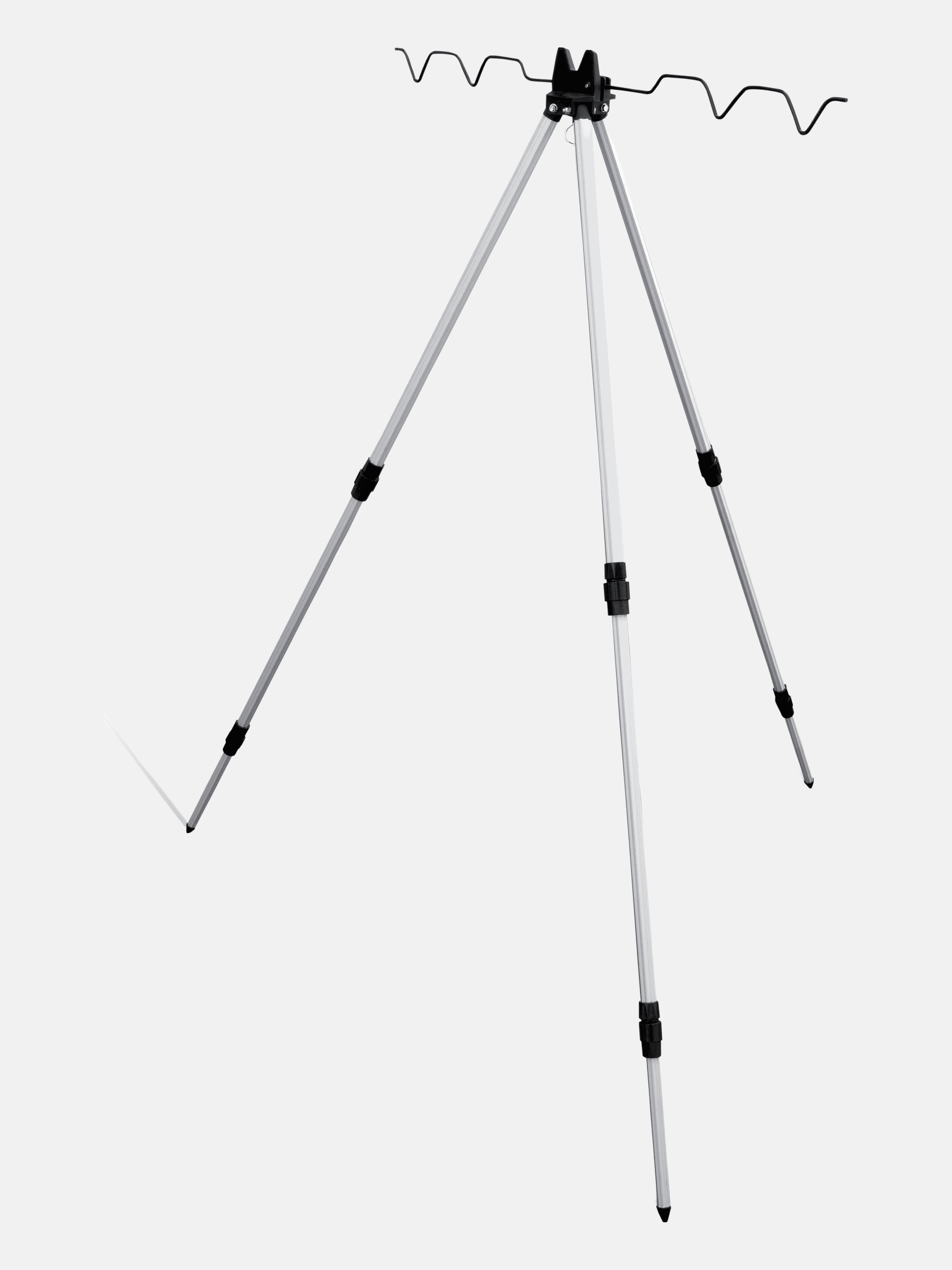 Il mini tripode da pesca è stato realizzato in alluminio robusto e leggero, con la possibilità di appoggiare e mettere in pesca fino a quattro canne, ben separate tra loro grazie all'estensione del braccio porta canne di ben 76cm, rendendolo bilanciato e funzionale.