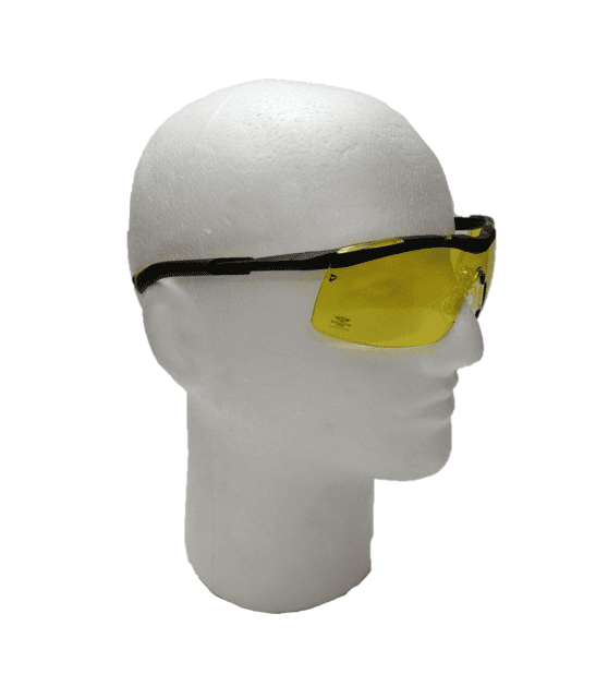 Gli occhiali avvolgenti in policarbonato sono particolarmente adatti per l'uso in poligoni di tiro, in quanto offrono una maggiore copertura dell'occhio rispetto ad altri tipi di occhiali.