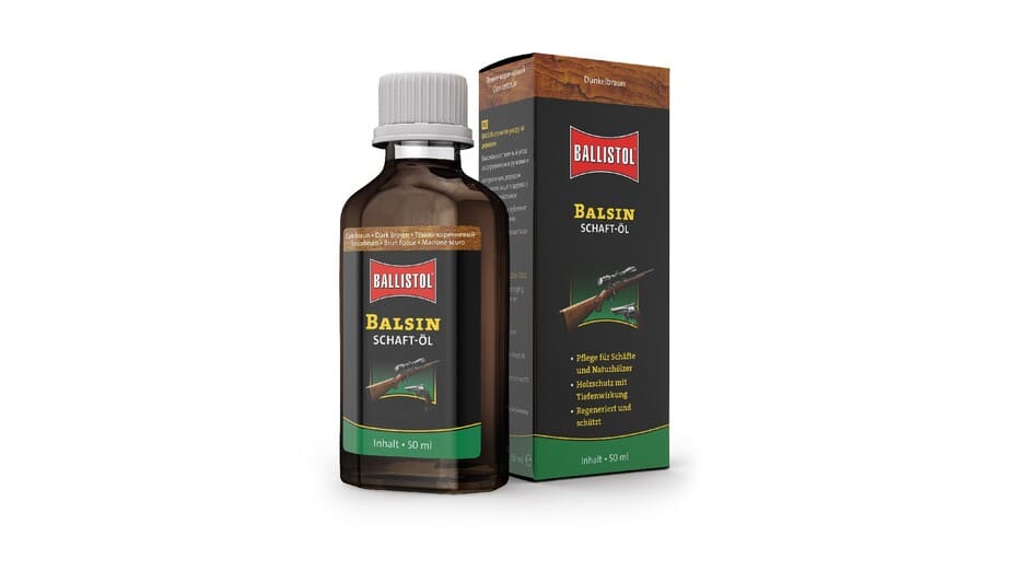 Ballistol Balsin finitura ad olio per calcio per fucile, un prodotto per la cura del legno naturale è ampiamente considerato ideale per la cura in profondità del legno, rigenerandolo e perfezionando la sua verniciatura, garantendo una protezione efficace contro la pioggia e l'umidità.