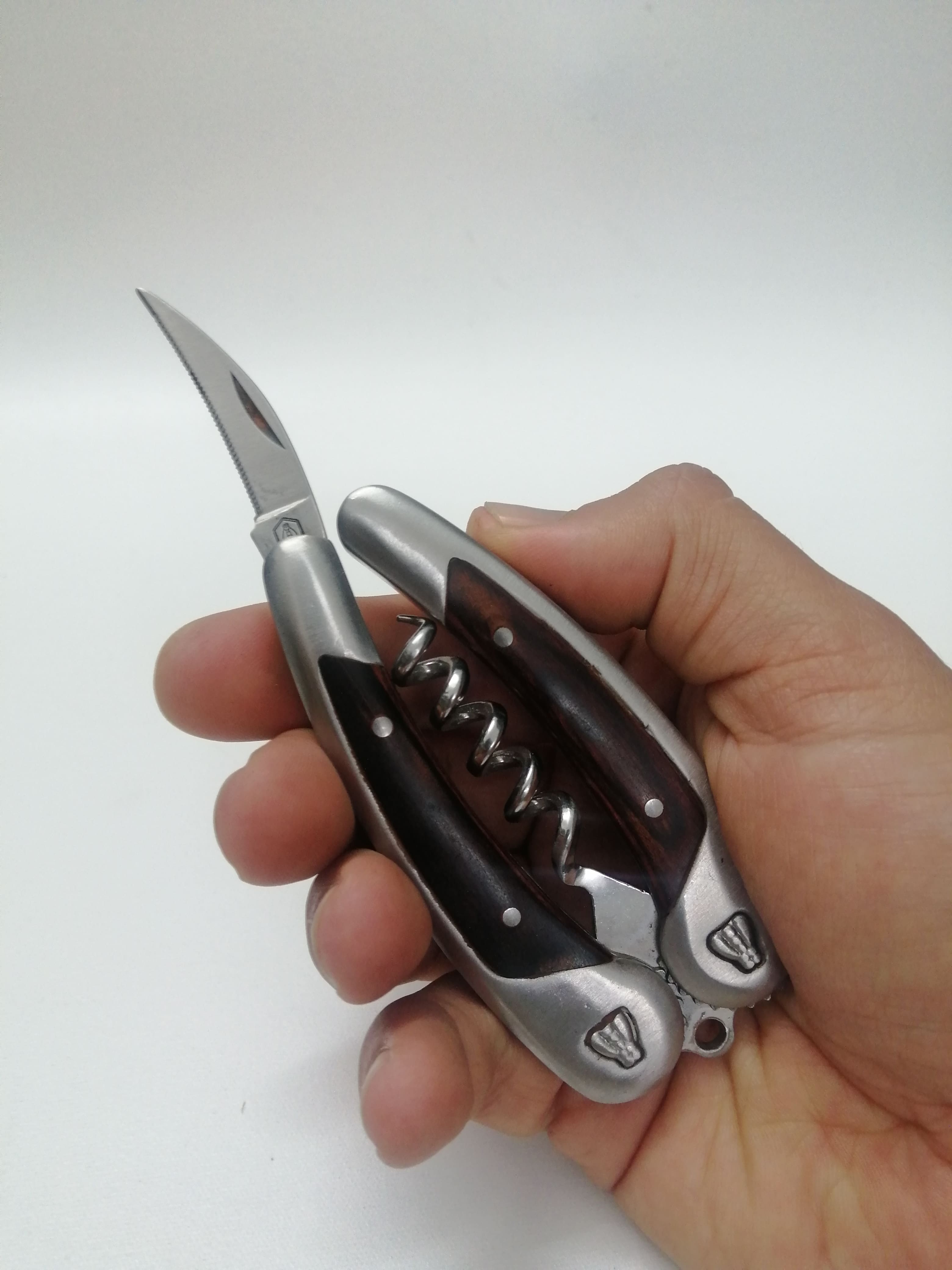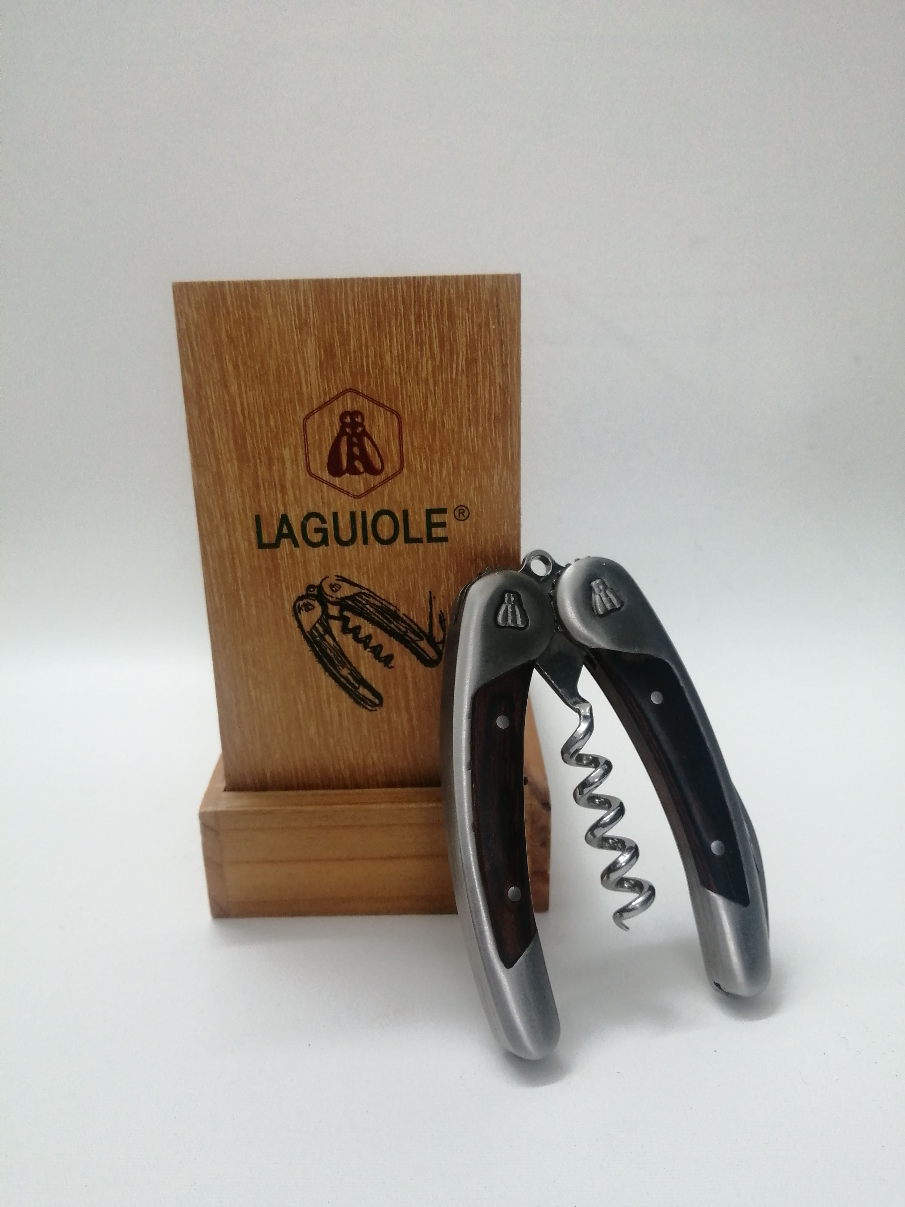 Il coltello cavatappi professionale a doppia leva è stato realizzato il corpo in acciaio con parti in legno, mentre nella parte laterale nelle guancette del coltello laguiole potremo usufruire di piccola lama per incidere.