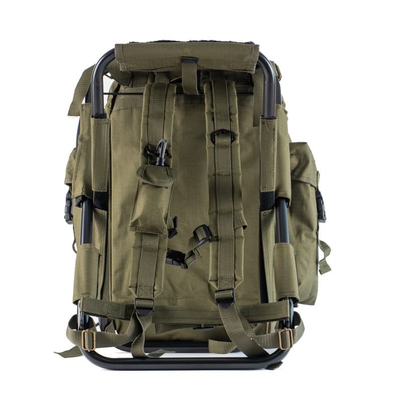 Zaino con sedia da caccia pieghevole e resistentissimo dal design moderno dalla praticità essenziale, ottimo per essere utilizzato sia per la caccia che per l'outdoor.