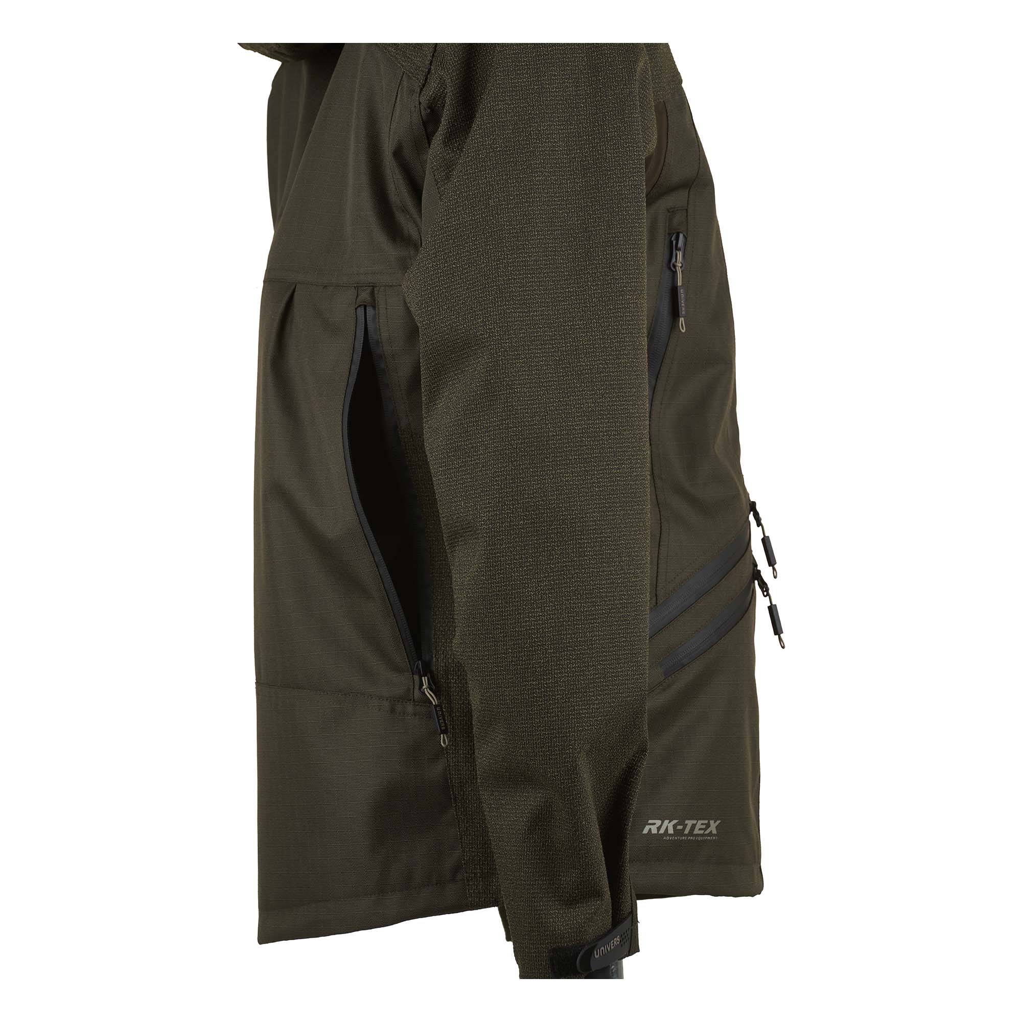 Le maniche in tessuto RK-TEX offrono una maggiore protezione, mentre le cinque tasche frontali con zip impermeabilizzate offrono ampio spazio per riporre gli attrezzi essenziali durante le escursioni nel bosco.