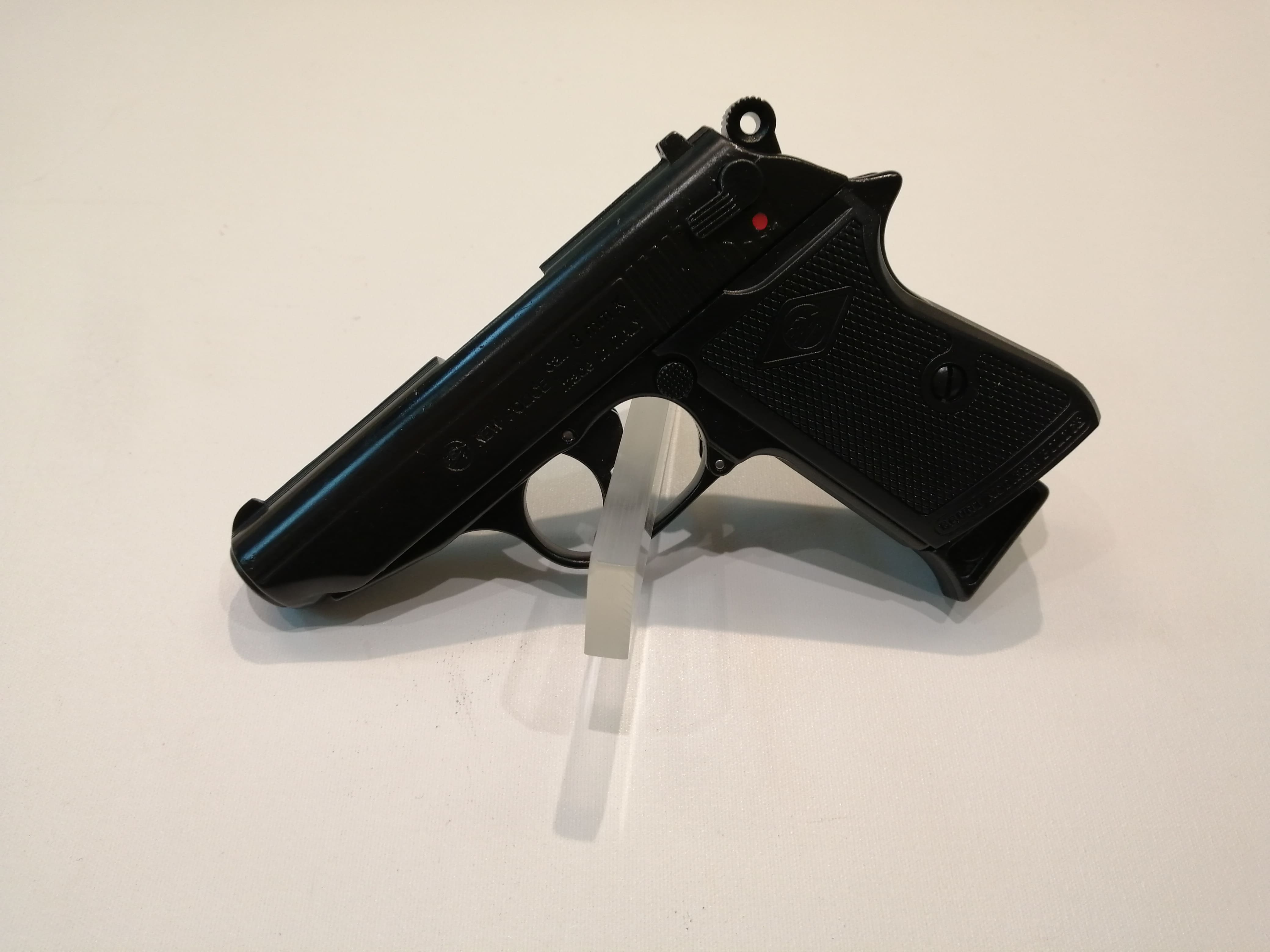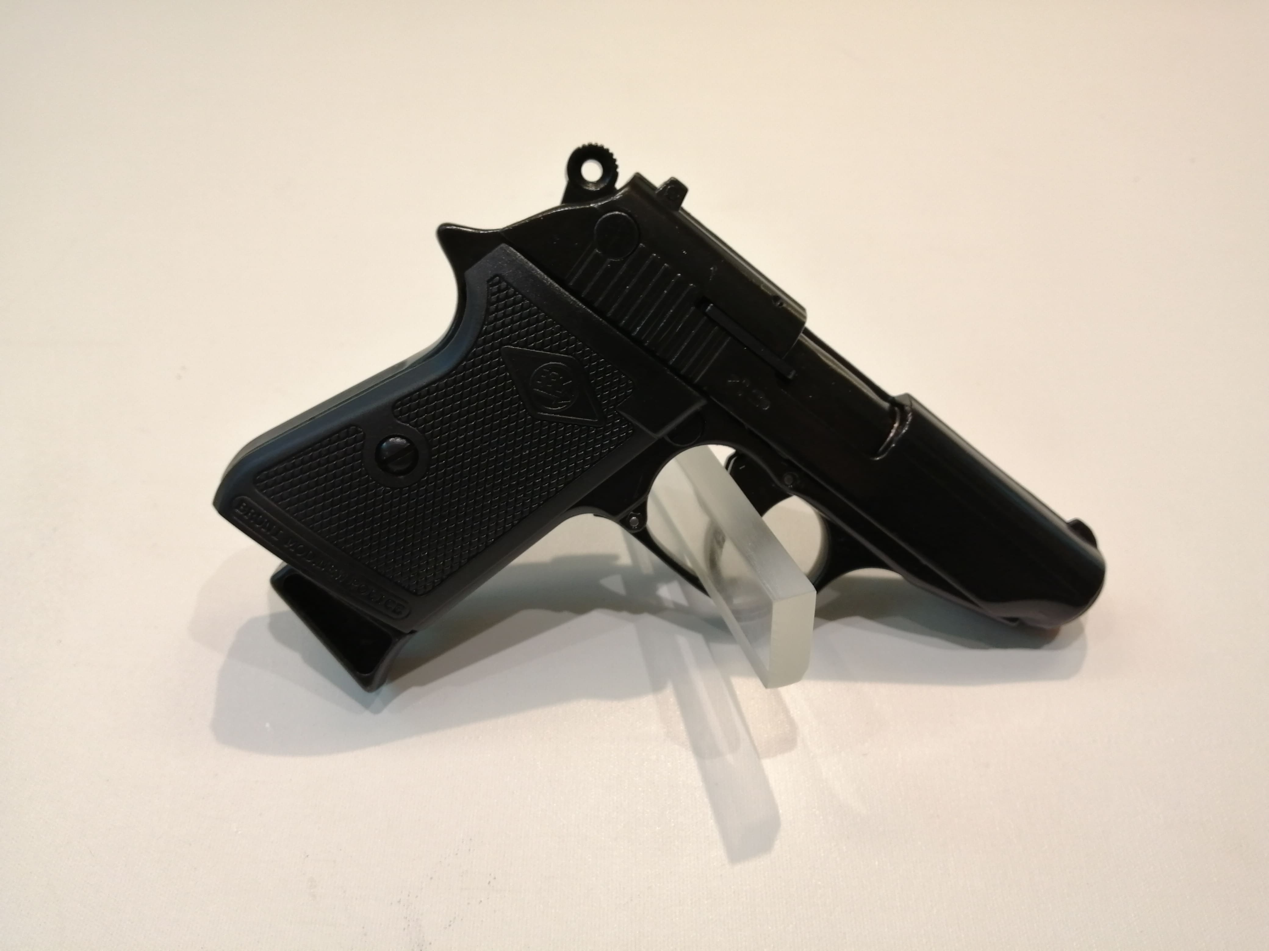Pistola Colt 1911 a salve: la replica fedele dell'iconica pistola americana La pistola 1991 Bruni Modello 96 è una straordinaria replica della celebre Colt 1911, caratterizzata da un'accurata riproduzione in ogni minimo dettaglio, inclusi peso e meccanica. Questo eccezionale pezzo presenta un'impugnatura di pregevole fattura, completa di guancette in legno che conferiscono un tocco distintivo. Non solo un capolavoro estetico, ma anche un'esperienza sensoriale impeccabile: la pistola a salve Bruni 96 è dotata di una meccanica semi-automatica e scarrellante, offrendo un suono realistico grazie ai proiettili da salve calibro 8 mm, fedeli all'originale. Questa autentica riproduzione, realizzata con cura in zama, una lega di alta qualità, si distingue per la robustezza e la durabilità, garantendo un'esperienza d'uso senza pari. Le dimensioni delle pistola scacciacani sono imponenti ha un caricatore monofilare da 10 colpi la rendono non solo un oggetto di grande fascino, ma anche un elemento versatile. La pistola Colt 1991 a salve è idonea come pistola per festeggiare il nuovo anno con stile e sicurezza. È importante sottolineare che, nonostante l'aspetto autentico, questa pistola a salve non è considerata un'arma, rendendola legalmente trasportabile. Tuttavia, affinché sia chiara la sua natura non pericolosa, si consiglia di non rimuovere mai il tappo rosso che la contraddistingue come pistola giocattolo. In termini tecnici, la pistola a salve Bruni Modello 96 opera in modalità singola, con caricatore monofilare e funzionamento semi-automatico. Il suo design inconfondibile, di colore nero, offre un'impugnatura in legno per un tocco di eleganza. Con una lunghezza di 185 mm e un peso di 1100 grammi, è un equilibrio ideale tra maneggevolezza e presenza scenica. In conclusione, la pistola Bruni Modello 96 è molto più di una semplice replica: è un capolavoro di ingegneria e design, un oggetto di prestigio adatto a collezionisti e appassionati, garantendo al contempo sicurezza e divertimento per le celebrazioni del nuovo anno. NOTA : Esercitando sia E-commerce, che vendita diretta al pubblico, la disponibilità del prodotto potrebbe non essere gestita in tempo reale. Nell'eventualità che dell'articolo non sia disponibile, vi verrà riaccreditato l'intero importo pagato, entro 24 ore