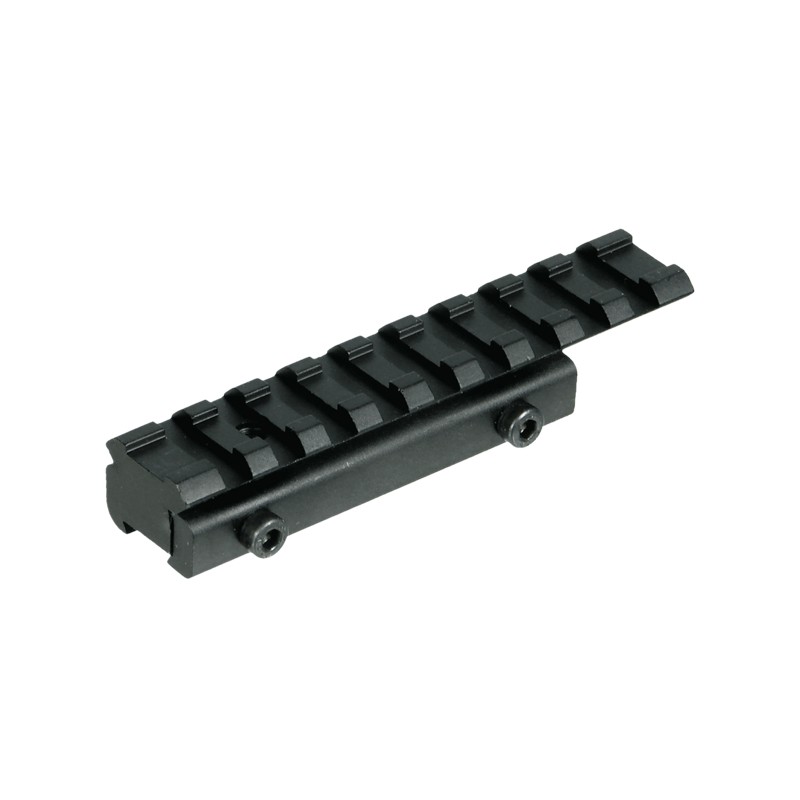 Realizzata in alluminio anodizzato nero per garantire robustezza e durata nel tempo, questa base offre una piattaforma standardizzata e affidabile per il montaggio di mirini ottici, punti rossi, mirini laser e altri accessori compatibili con la slitta Picatinny.
