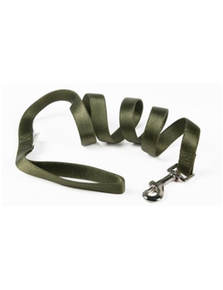Questo guinzaglio per cani è stato realizzato in robusto nylon di colore verde scuro, con apposito moschettone a sgancio rapido perfetto per agevolare l'apertura e la chiusura del guinzaglio sul collare.