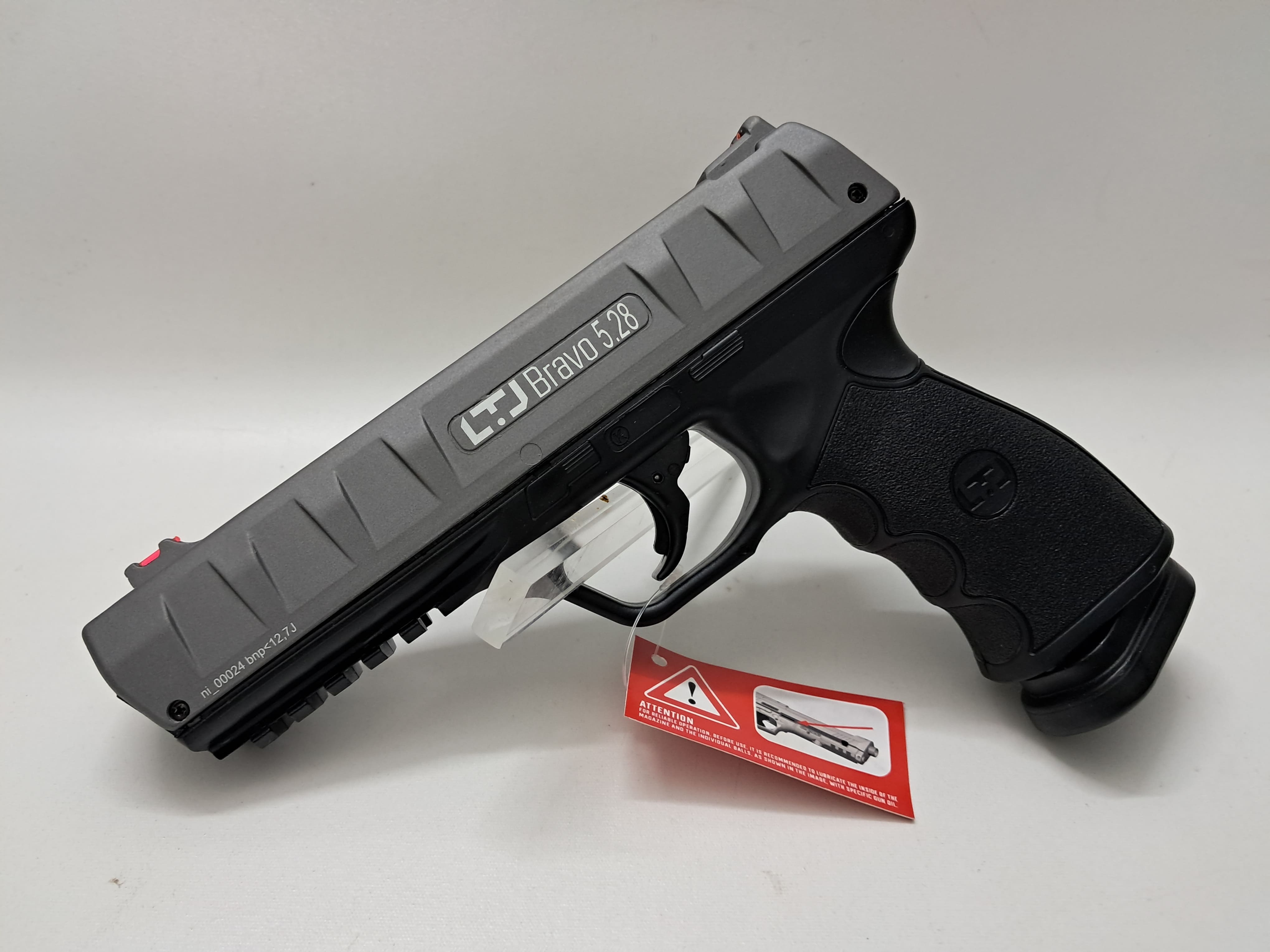 Uno dei principali vantaggi della Pistola Co2 Bravo 5.28 è la sua compatibilità con un’ampia gamma di munizioni calibro 50: metallo, gomma, gomma e metallo, plastica dura, vetro, vernice da paintball e persino peperoncino.