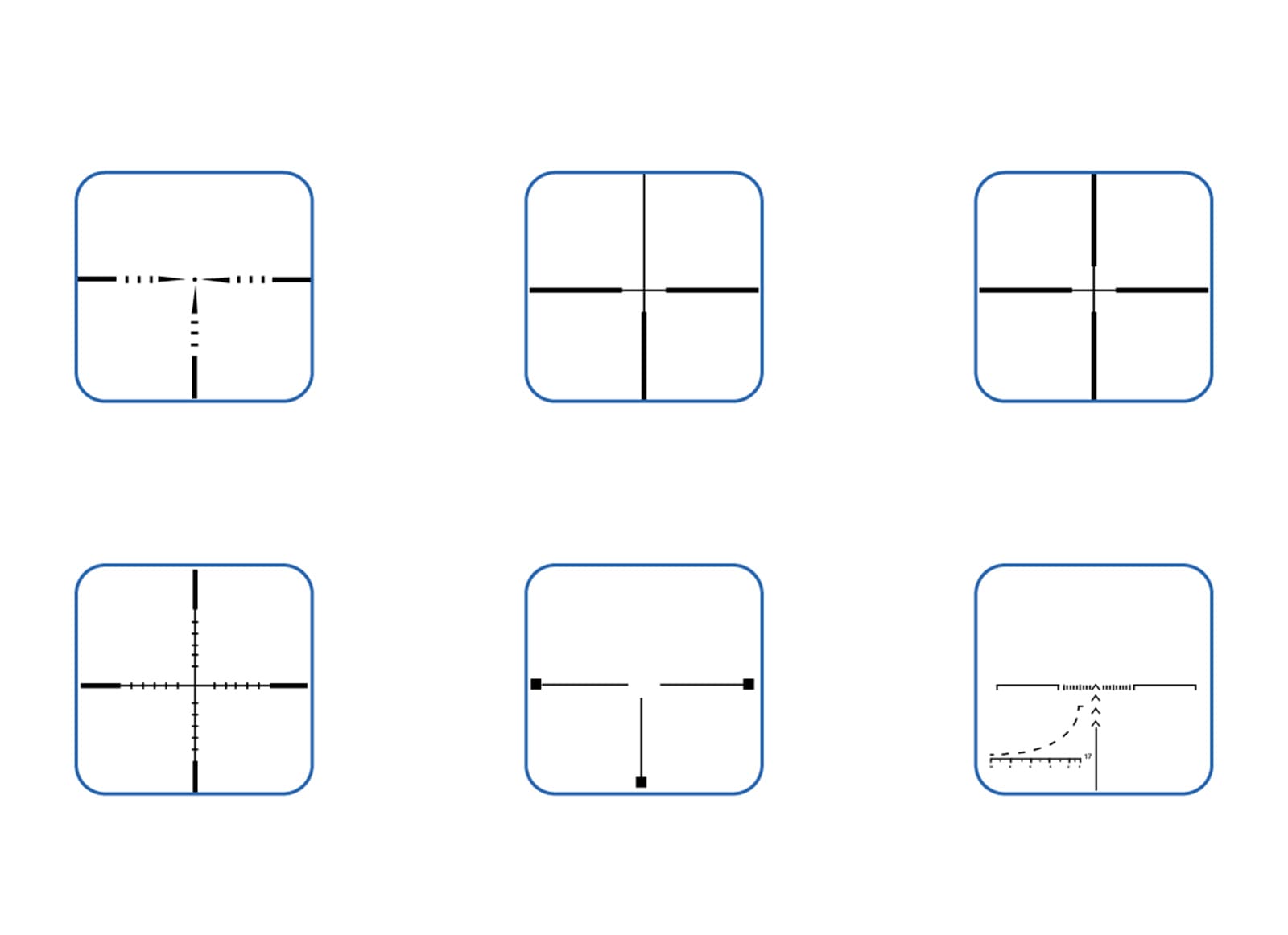 - Sei reticoli diversi, selezionabili in base alle preferenze del tiratore.