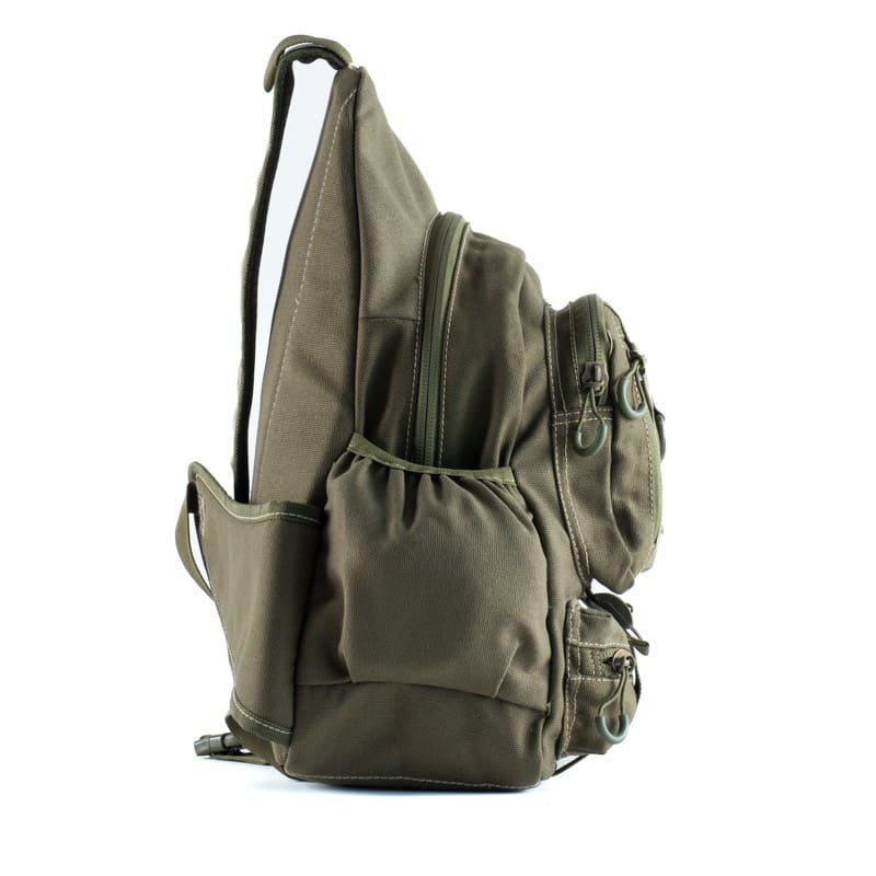Zaino monospalla da caccia piccolo e compatto ma molto spazioso si presenta questo zainetto ideale per la caccia e per il tempo libero realizzato in new canvas spessa, molto robusta di colore verde scuro. Lo zaino monospalla da caccia si differenza da uno zaino comune da come viene indossato uno stile tutto unico e differente ma con tutte le comodità di un semplice zaino, possiede una grande tasca principale per riporre i propri oggetti e come possiamo notare ha svariate taschini al di fuori. NOTA : Esercitando sia E-commerce, che vendita diretta al pubblico, la disponibilità del prodotto potrebbe non essere gestita in tempo reale. Nell'eventualità che dell'articolo non sia disponibile, vi verrà riaccreditato l'intero importo pagato, entro 24 ore
