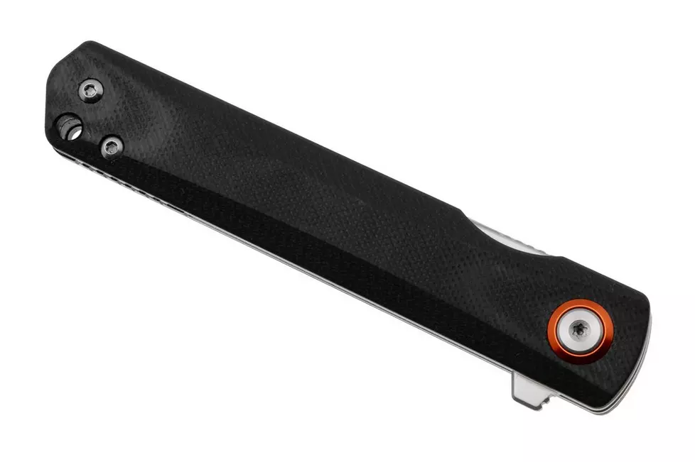 Manico in G10 nero: Il manico ergonomico in G10 nero assicura una presa salda e confortevole, anche in condizioni di umidità o con guanti.